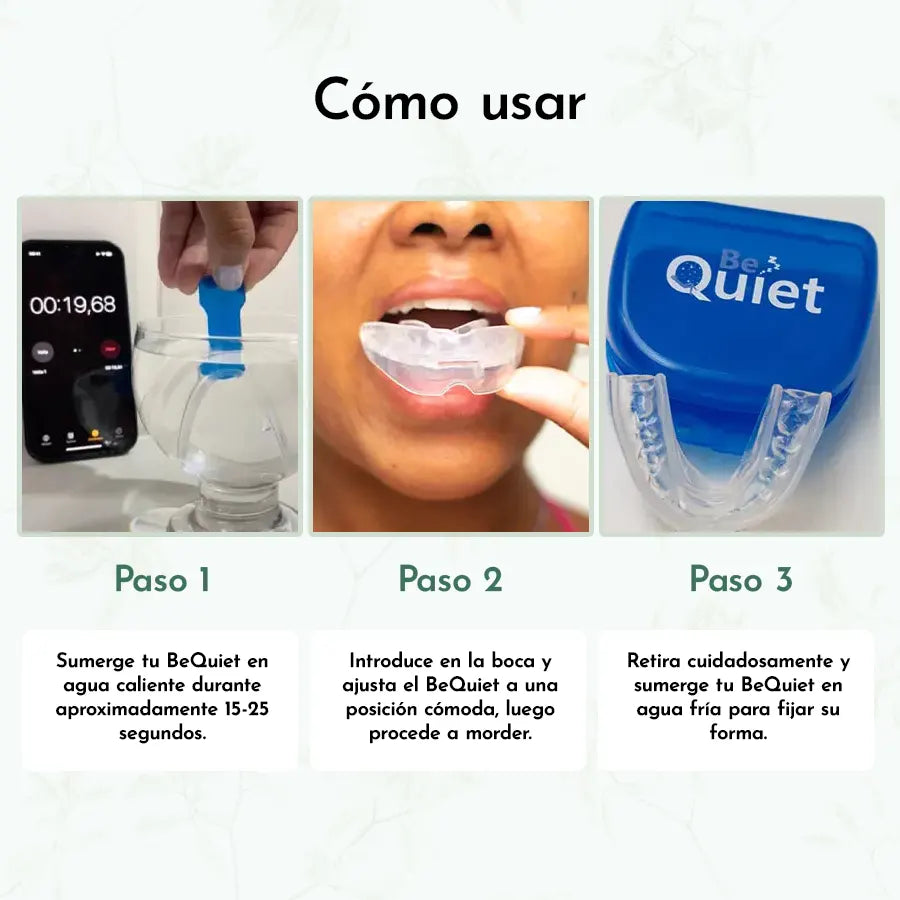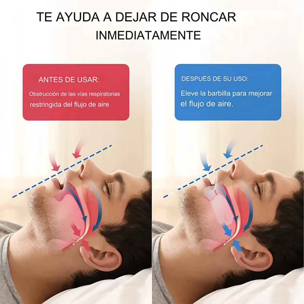 AirFlow funciona alineando suavemente la mandíbula inferior hacia adelante, ensanchando naturalmente las vías respiratorias para detener las vibraciones de los tejidos que causan ronquidos. Si los ronquidos interrumpen tu sueño o el de tus seres queridos, te ayudará a dormir profundamente y despertar revitalizado.