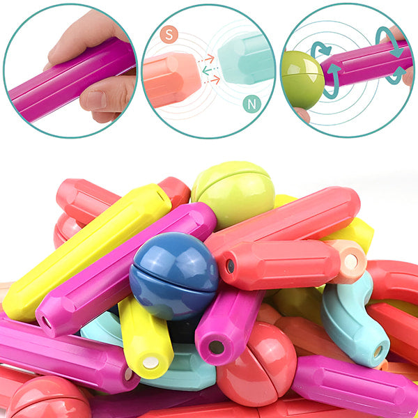 El juguete SUPERBLOCK consta de palos y bolas magnéticos de colores que fomentan en los niños una serie de habilidades de pensamiento, la capacidad de resolver problemas, el pensamiento simbólico y la percepción de los colores. Este kit de juguetes magnéticos fomenta el pensamiento espacial, mejora la coordinación mano-ojo y ofrece a los niños la libertad de construir distintas formas como coches, animales, casas o cualquier cosa que despierte su imaginación e interés.
