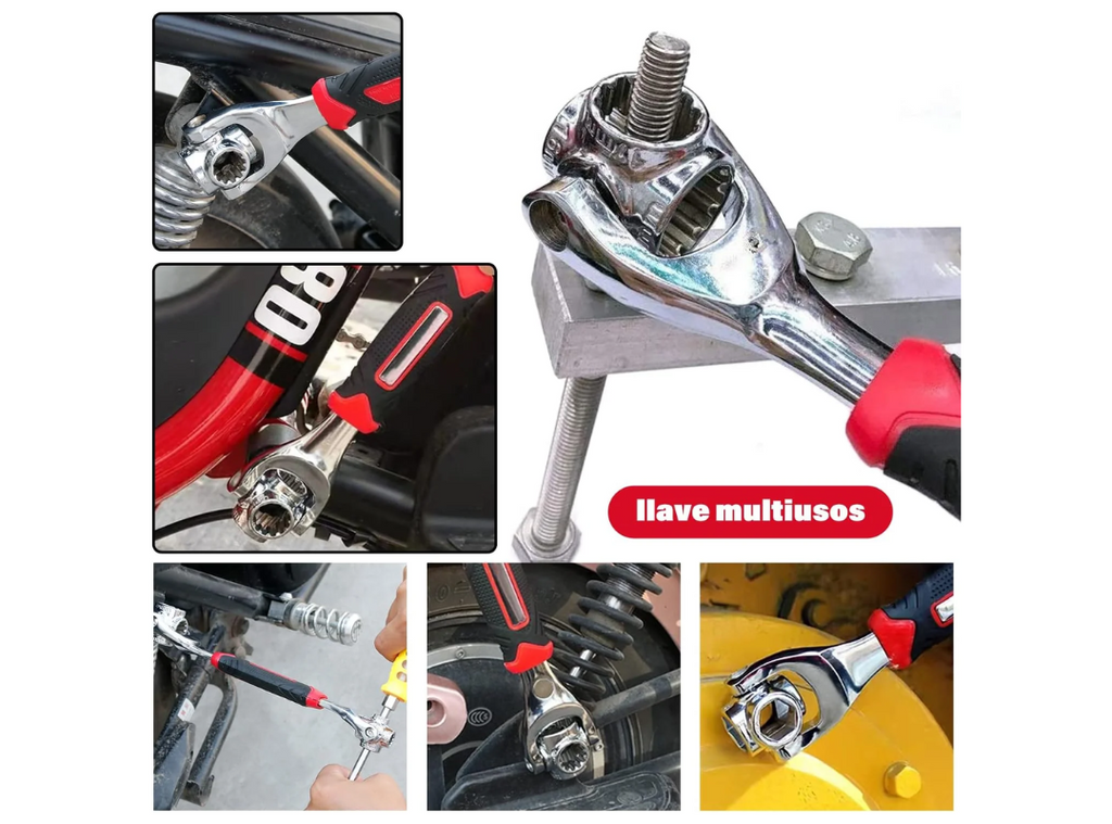 Esta llave es una combinación de 48 llaves en una, hace que cualquier reparación sea rápida y fácil.